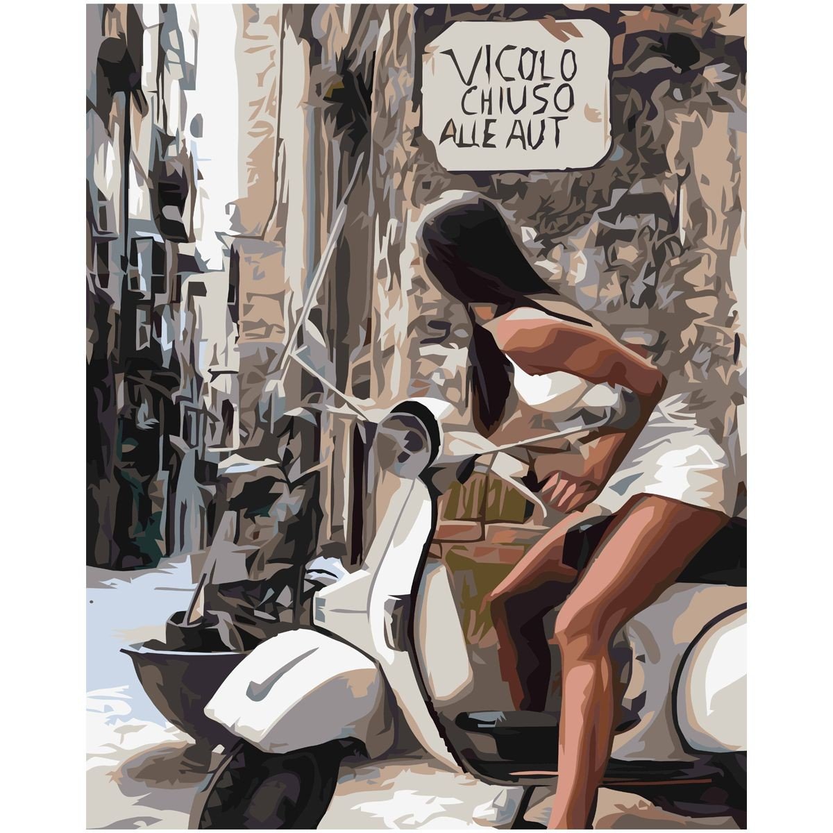 Опис Картина по номерам "Дівчина та білий мопед" 40х50 см