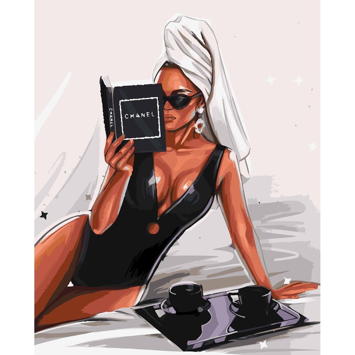 Опис Картина за номерами "Гламурна з книгою Шанель" 40х50 см