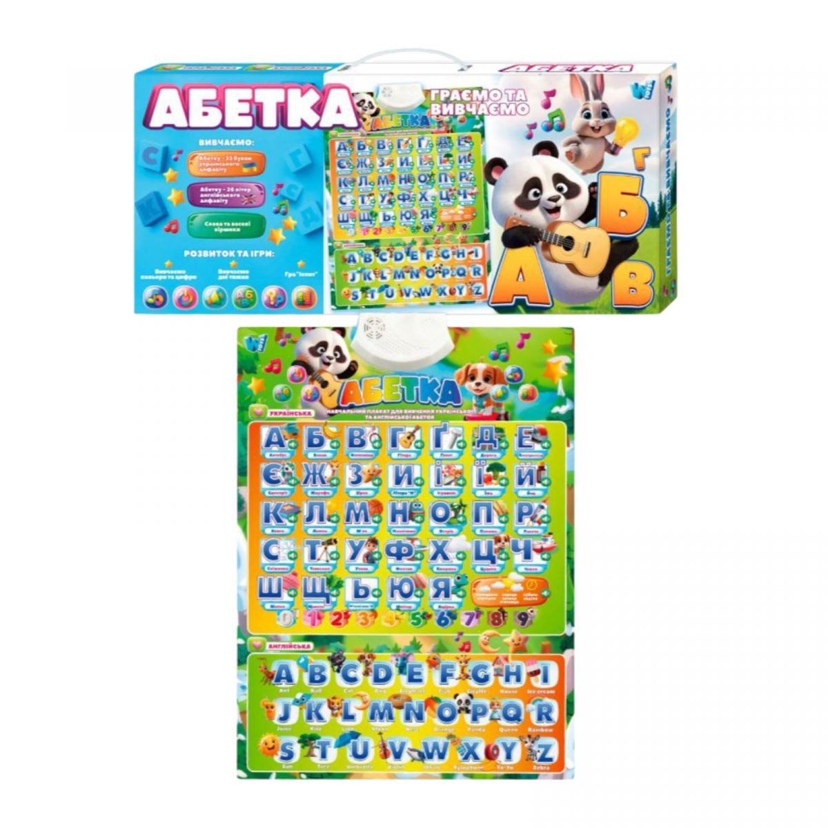 Абетка "Граємо та вивчаємо", ОЗВУЧ. УКР. МОВОЮ, укр. та англ. абетка, кольои, цифри, іспит, пісні, к