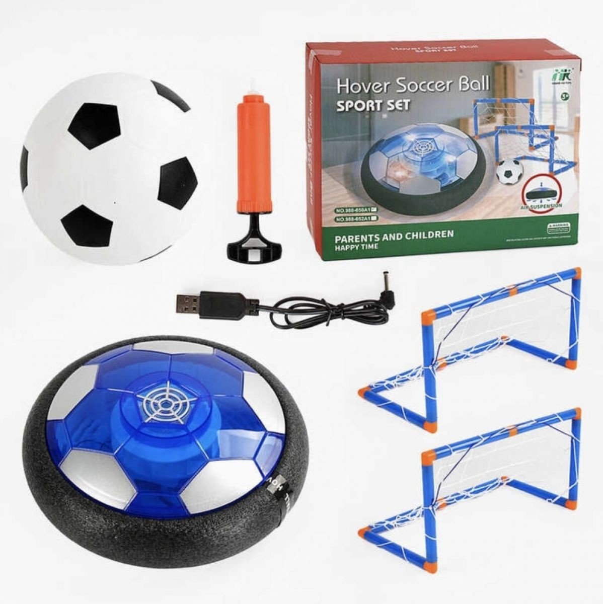 Аерофутбол — це ігровий набір з аером’ячем на повітряній подушці, який легко ковзає по поверхні, а також класичним гумовим м’ячем і воротами. Працює від вбудованого акумулятора (орієнтовно), підходить для дітей від 5 років та забезпечує активну гру без шкоди для меблів.