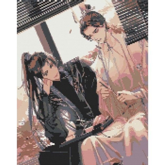 Опис Алмазна мозаїка "Аніме. Хаскі та його вчитель Білий Кіт" 40х50 см