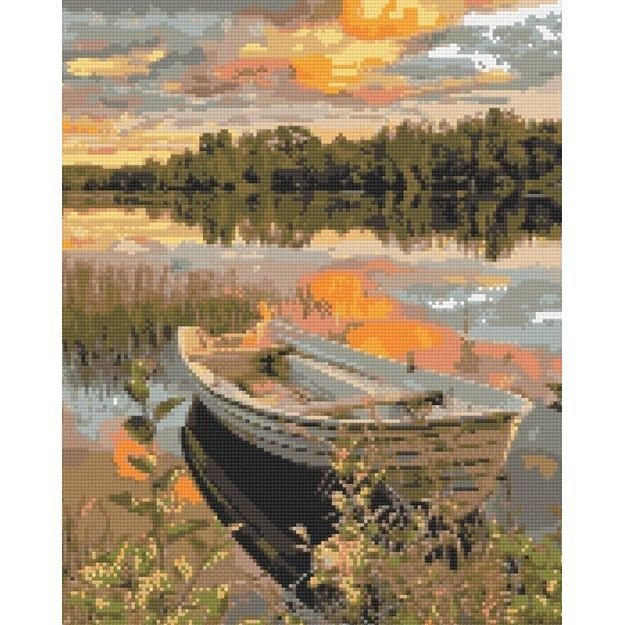 Опис Алмазна мозаїка "Човен на заході сонця" 40х50 см
