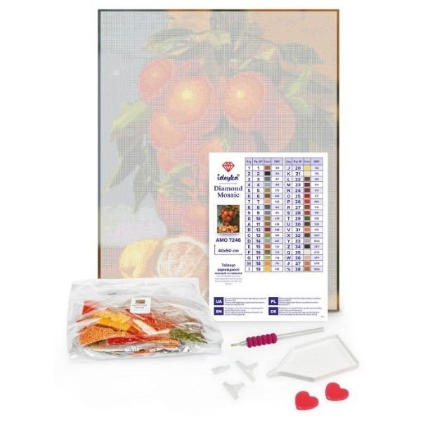 Викладення картин алмазною технікою є чудовим заняттям для зняття стресу, медитації та релаксу. Готові картини можуть прикрашати інтерʼєр. Виблискуючий шедевр створюється за допомогою маленьких різнокольорових кристалів, які один за одним слід приклеювати на заготовлений ескіз. У наборі: полотно з клейовим шаром на підрамнику, лоток для сортування страз, пінцет, стілус, липка маса для стілуса, різнокольорові стрази, схема. Розмір: 40х50 см.