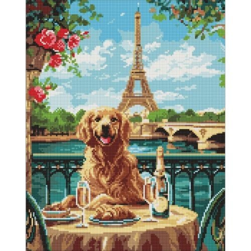 Опис Алмазна мозаїка "Ретривер у Парижі" 40х50 см