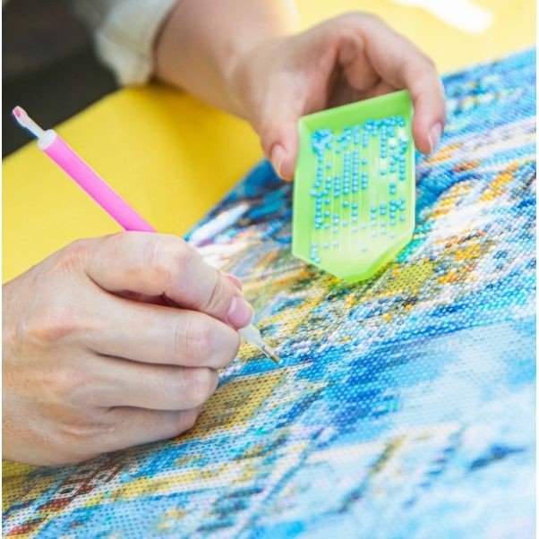 Викладення картин алмазною технікою є чудовим заняттям для зняття стресу, медитації та релаксу. Готові картини можуть прикрашати інтерʼєр, а також будуть гарним подарунком. Завдяки ефекту 5D, картини набувають дивовижного, чарівного обʼємного вигляду, який поглиблюється за допомогою огранювання кожного каменя. У наборі є: полотно з клейовим шаром та кольоровою схемою, яке оформлене на підрамник галерейним способом, акрилові стрази згідно комплектації набору, пінцет для страз, спеціальна ручка-стилус для роботи зі стразами, гель-клей, інструкція. Розмір: 40х50 см.
