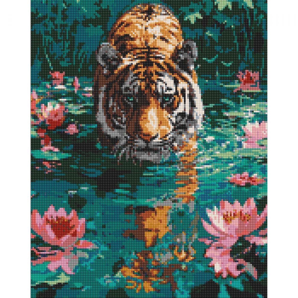 Опис Алмазна мозаїка "Тигр на полюванні" 40х50 см