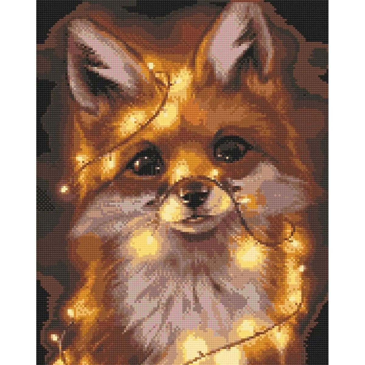 Опис Алмазна мозаїка "Лисеня в гірлянді" 40х50 см