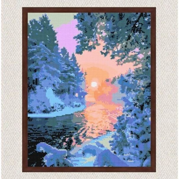 Опис Алмазна мозаїка "Зимовий пейзаж" 40х50 см