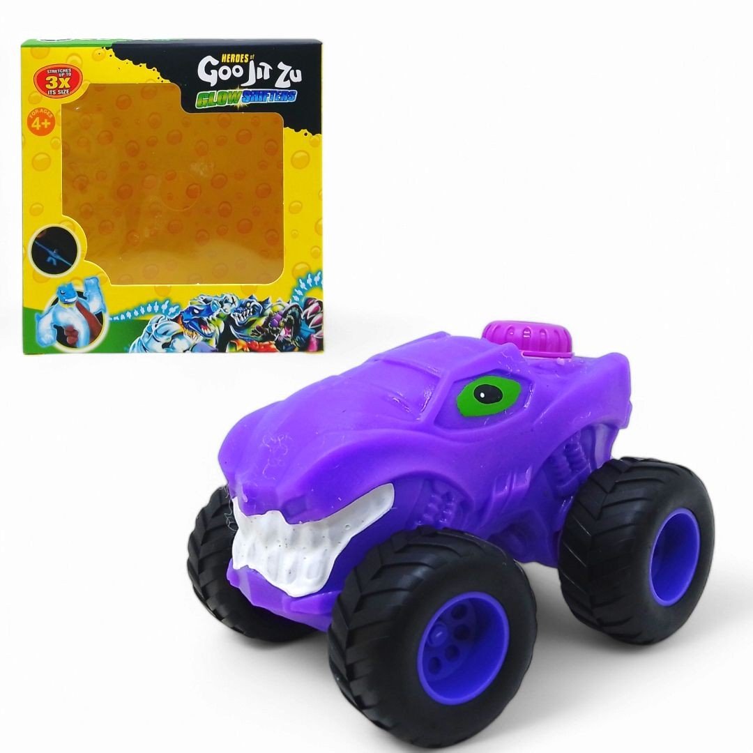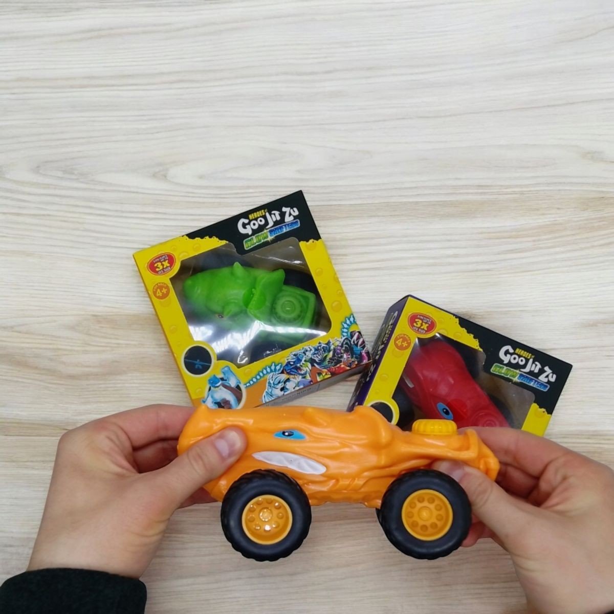 Цікава та незвичайна іграшка-антистрес. Виконана у вигляді діно-машинки (GOO JIT ZU, Гуджіцу, Гуджітсу). Іграшкою можна гратись і як машинкою, і як антистресом-тягучкою. Весь корпус машинки виготовлений з дуже мʼякої та еластичної гуми, колеса - з міцного пластику та покриті тоненьким шаром гуми. Розмір машинки - 11,5х9х10 см, діаметр коліс - 4,7 см. Виготовлено з якісних та безпечних матеріалів. Рекомендовано для діток старше 4-х років.
