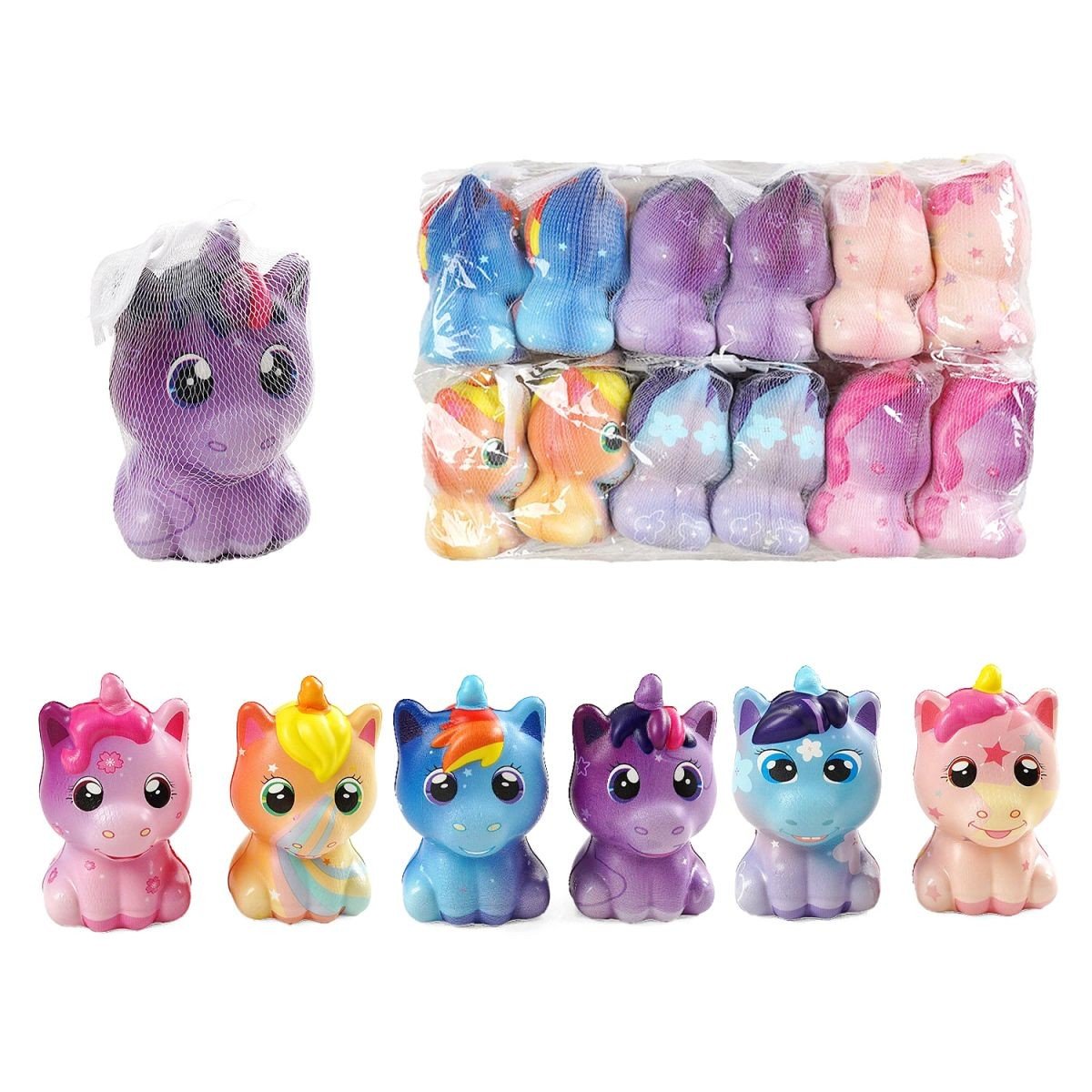Ароматний сквіш у вигляді милого єдинорога. Сквіш - це іграшка-антистрес, яка після натискання на неї повільно повертає свою колишню форму. Розмір даної іграшки - 9,5х6х5,5 см. Дітям корисна тим, що розвиває дрібну моторику та заспокоює нерви. Має приємний, солодкий запах. В наборі 12 сквішів.