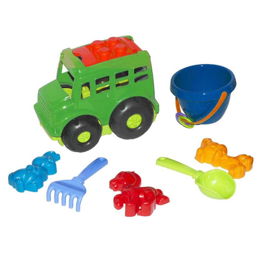 Машинка автобус "Бусик" №3 з пісочним набором. Пісочний набір складається з: (відерце, лопатка, грабельки, 3 пасочки).