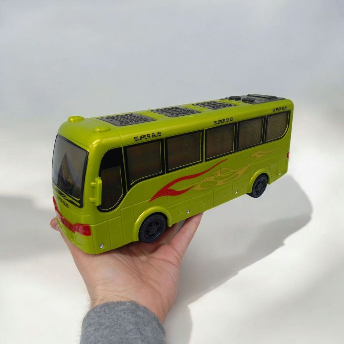 Бренд: RI YUESEN TOYS Упаковка: Коробка Колір: Різнобарв'я Тип ел-тів живлення: Батарейки,АА Кількість ел-тів живлення: 3 Ел-ти живлення в комплекті: Ні Вага з упаковкою: 440 г Габарити в упаковці: 12.5 x 30.5 x 9 см Країна виробник: Китай Матеріал: Пластик Комплектація: Автобус