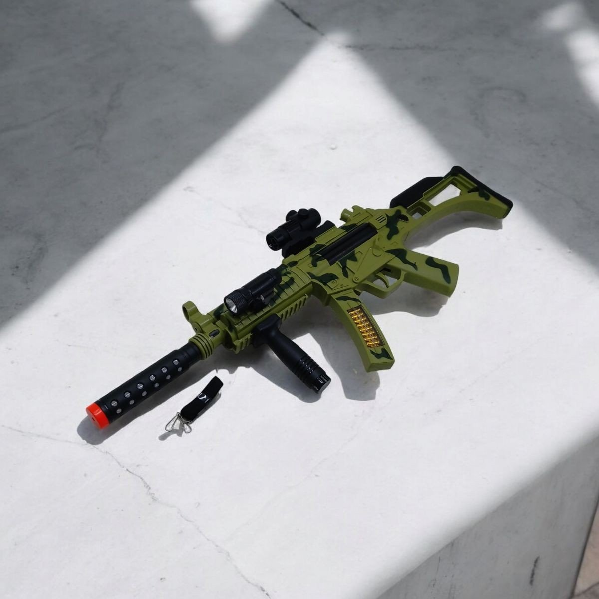 Дитячий автомат на батарейках – це яскрава та захоплива іграшка для активних ігор! Реалістичні звуки пострілу, патрони в магазині, що рухаються, ліхтарик і кольорове підсвічування зроблять гру ще більш цікавою. Ідеально підходить для маленьких любителів пригод!