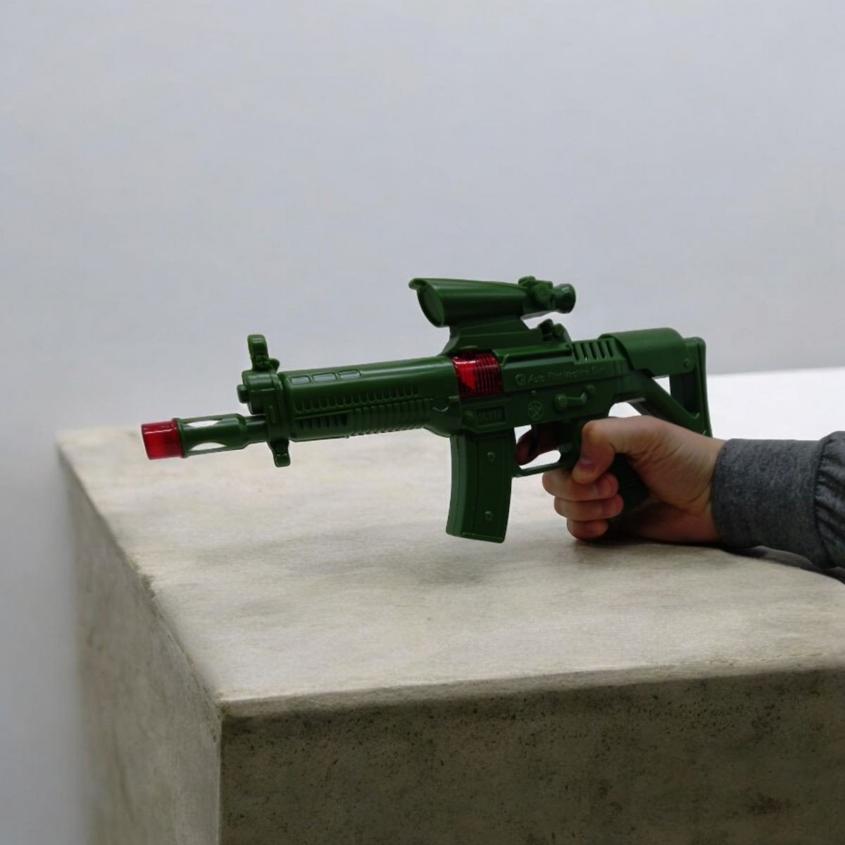 Бренд: GOLDEN GUN Упаковка: Пакет Колір: Зелений Тип ел-тів живлення: Немає Ел-ти живлення в комплекті: Ні Вага з упаковкою: 125 г Габарити в упаковці: 44 x 18 x 2.5 см Габарити без упаковки: 15.5 x 35 x 3 см Країна виробник: Іран Матеріал: Пластик Комплектація: Автомат