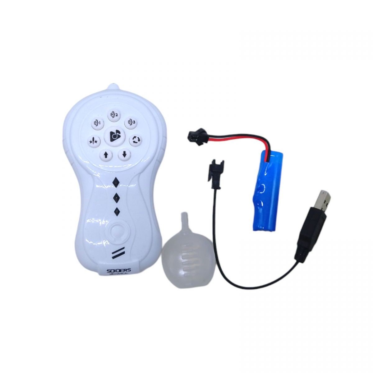 Частота – 2,4 GHz. Працює від акумулятора (є в комплекті), пульт від 2 батарейок АА (немає в комплекті).
