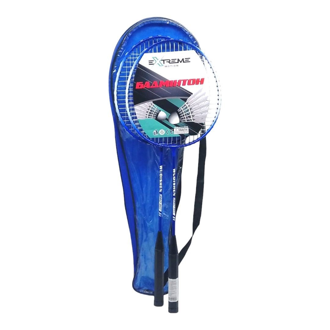 Набір ракеток для гри в бадмінтон. Розмір однієї ракетки - 64х20 см. Виконані з металу та пластику. Сітка ракетки добре зафіксована, виготовлена з нитки. Відмінно підійде для гравців-початківців, можна грати як на вулиці, так і в приміщенні. Гра в бадмінтон сприяє розвитку координації рухів та орієнтації у просторі. Набір укомплектований у зручний чохол з ручкою.