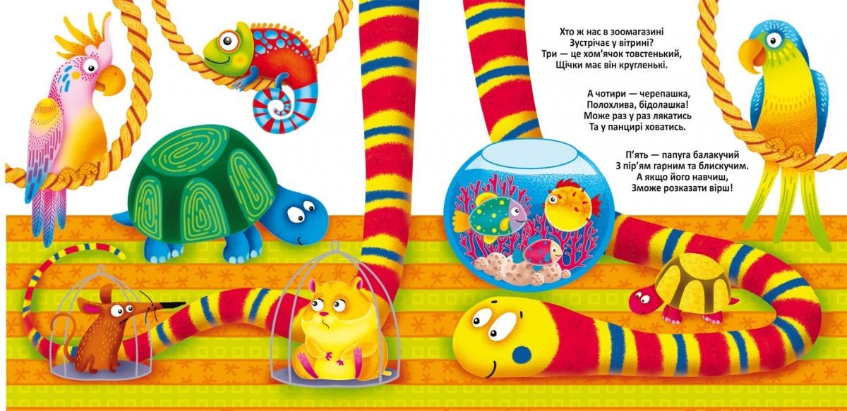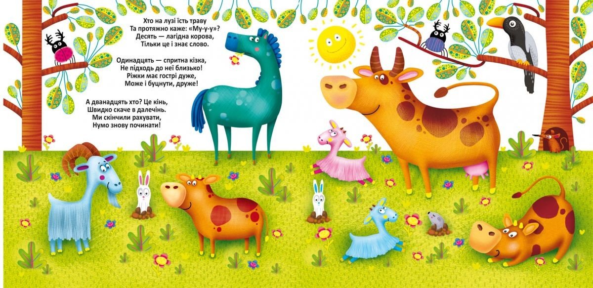 Багаторазові водні розмальовки. Достатньо провести мокрим пензликом по чистому аркушу, як він перетвориться в яскравий малюнок. Дай зображенню повністю висохнути, і воно зникне. З веселими віршиками. 10 сторінок, українською.