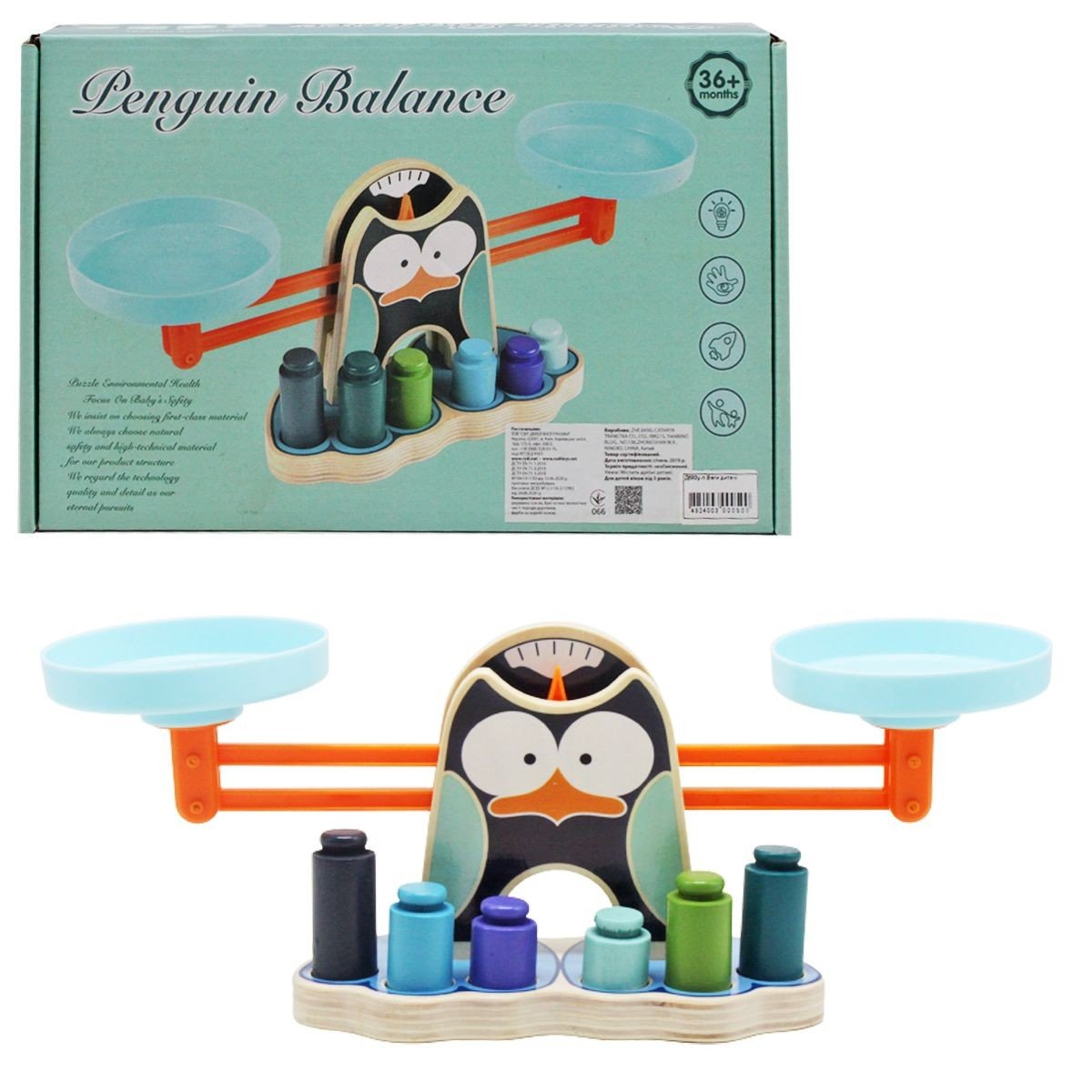 Деревʼяний балансир "Пінгвінчик" - незвичайний та цікавий спосіб навчитися рахувати. У набір входять 6 різнокольорових грузиків різних розмірів, ваги у вигляді пташки та підставка для них. Можна створювати різні приклади та цікаві завдання, які допоможуть дитині вивчити поняття ваги, розвинути дрібну координацію рук та логічне мислення.