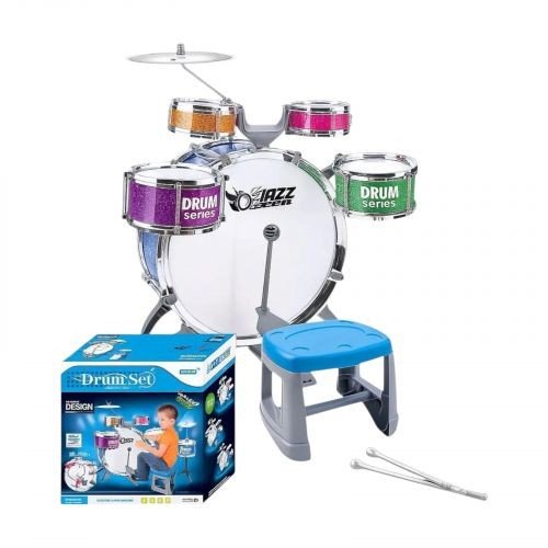 Опис Барабанна установкастільчик, 4 барабани, 1 барабан із педаллю, 2 палички, 1 металевий диск, в коробц
