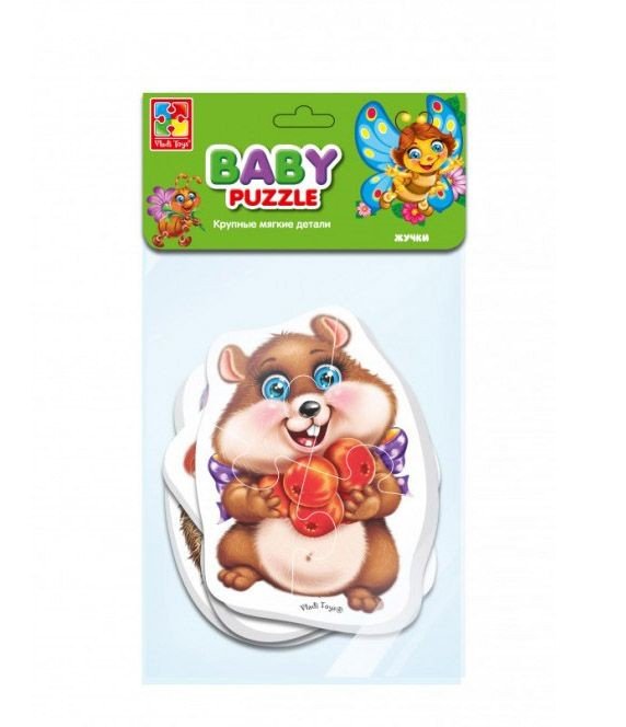 Бебі пазли "Пушистіки" хороший варіант пазлів для малюків. Розвивають дрібну моторику, формують знання про жівотних.Часті пазлів досить великого розміру. В комплекті 4 зображення тварин.
