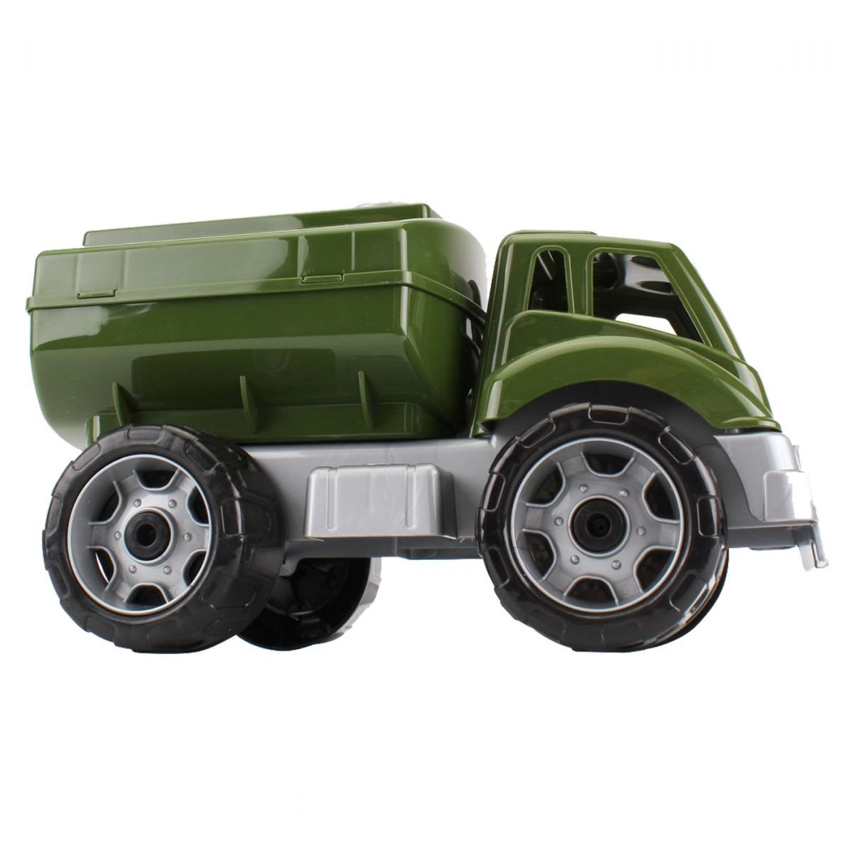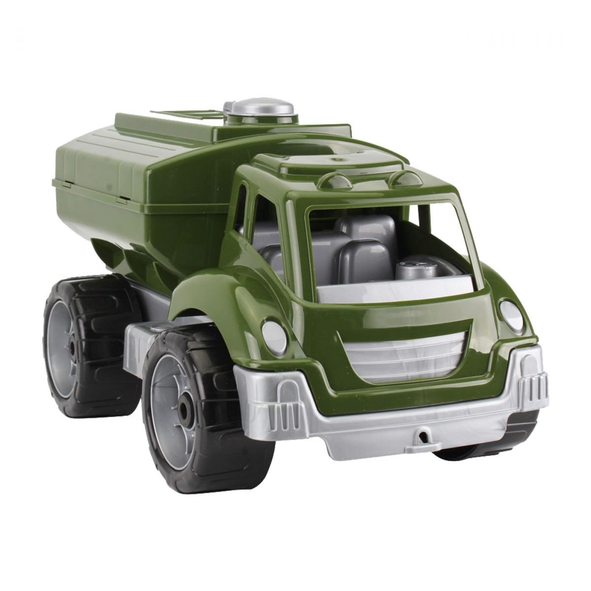 Бензовоз пластиковий. Виконаний у військовій тематиці. Чудово підійде для ігор у пісочниці або будь-де. Має люк, що відкривається. Виготовлено з якісного та безпечного пластику. Розміри: 19х20х29см.