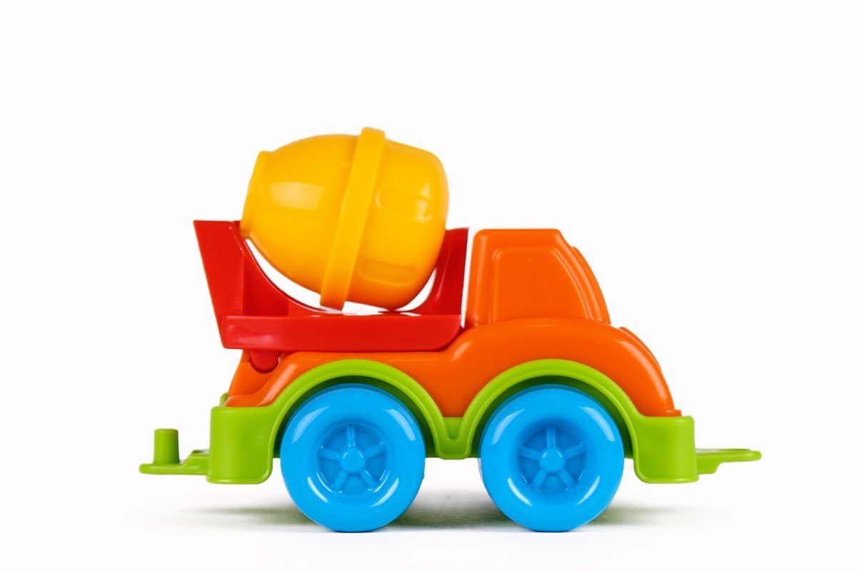 Яскравий, пластиковий, маленький автоміксери з рухомим барабаном.