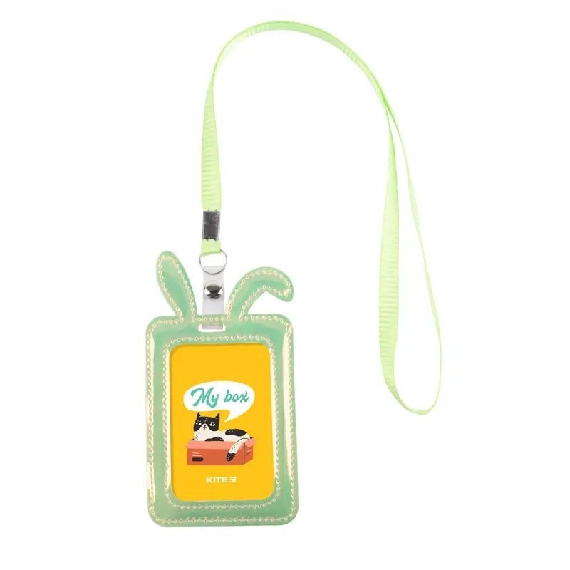 Вертикальний бейдж KIte – зручний аксесуар для кишенькових документів. Він має яскравий дизайн з прозорою кишенею, що ідеально підходить для проїзного, учнівського квитка, абонементу, пропуску або інших документів розміром до 75 x 145 мм. Оригінальна форма з декоративними кролячими вушками та насичене сяюче забарвлення роблять цей бейдж привабливим та приємним у використанні. Кріплення виконане у вигляді шнурка із металевою застібкою, довжина шнурка – 40 см.