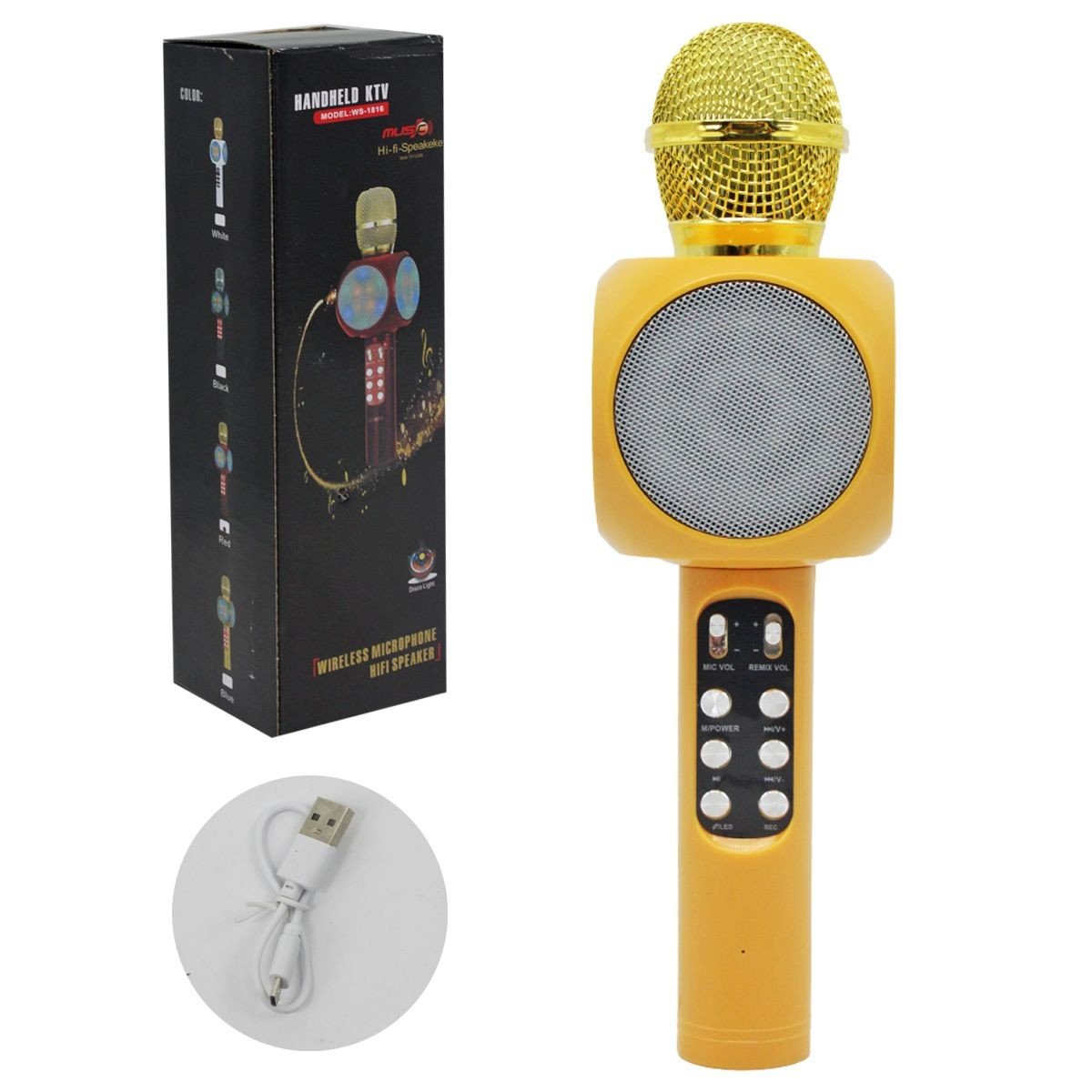 Бездротовий мікрофон-караоке. Підключається до смартфону за допомогою Bluetooth. Можна використовувати як звичайний мікрофон, так і портативну колонку. Програє музику зі смартфона та дозволяє співати під них, записуючи свої композиції (вбудований слот для картки пам'яті). Має роз'єм для підключення навушників. Можна увімкнути мікрофон з ефектом луни. Є різнобарвне яскраве підсвічування, яке при необхідності можна вимкнути.