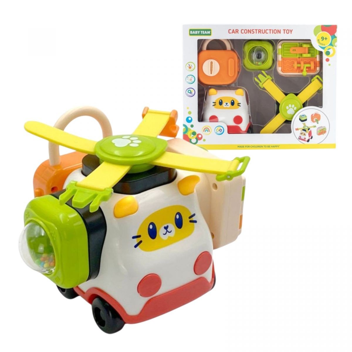 Бізіборд у вигляді кото-автомобіля. Має чотири боки в які можна закріпити деталі іграшки у будь-якій послідовності. Складається з замочка з ключем, брязкальцем з кульками, пропелером у вигляді смужок що скріплюються між собою, та відсіком з закритими літерами — треба постаратися відкрити всі віконця, щоб до них дібратися. Завдяки рухливим елементам іграшка розвиває дрібну моторику, логіку та сенсорне сприйняття дитини. Виконана з якісних та безпечних матеріалів. Рекомендовано для дітей віком від 18 місяців.