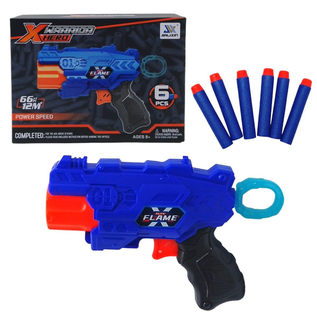 Бренд: JIALIXIN Упаковка: Коробка Колір: Синій Вага з упаковкою: 150 г Габарити в упаковці: 12.5 x 17 x 5 см Країна виробник: Китай Матеріал: Пластик Комплектація: Автомат, 6 патронів