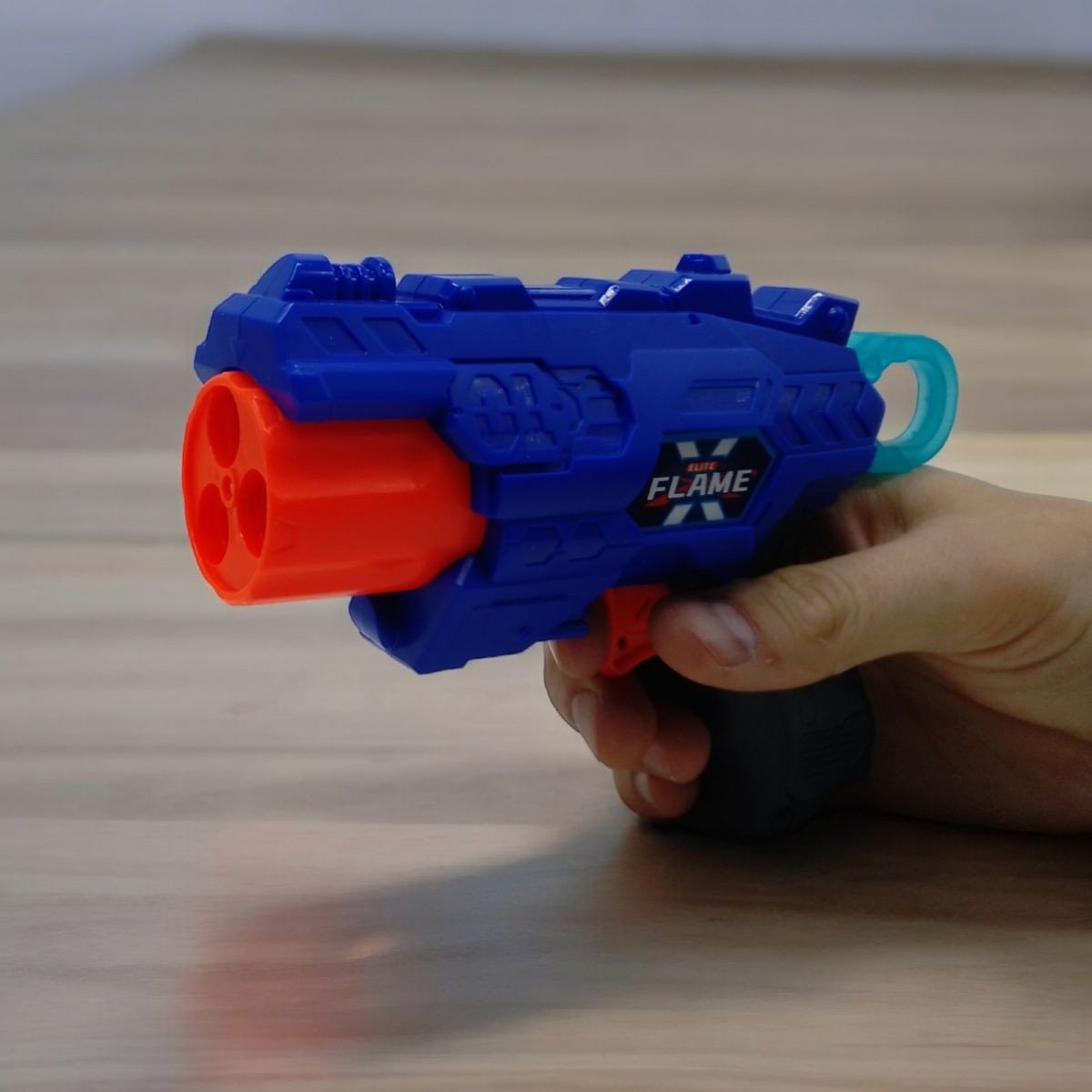 Бластер із мʼякими поролоновими снарядами, призначений для активних ігор. Забезпечує дальність пострілу до 12 метрів, що робить його ідеальним вибором для захоплюючих битв на свіжому повітрі. Легкий та зручний у використанні, підходить для дітей та дорослих.