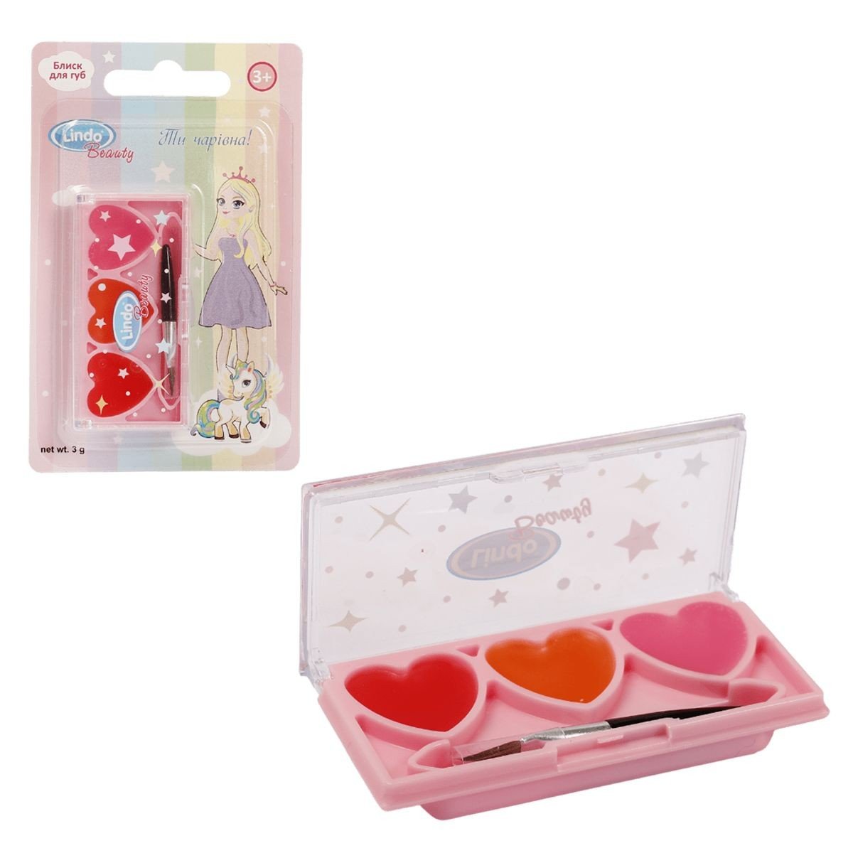 Бренд: Lindo Упаковка: Планшет Колір: Різнобарв'я Вага з упаковкою: 25 г Габарити в упаковці: 8.5 x 13.5 x 1 см Габарити без упаковки: 3.5 x 8 x 1 см Країна виробник: Україна Матеріал: Комбінований Комплектація: Блиск для губ (3 види), пензлик