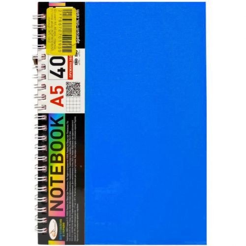 Опис Блокнот А5, 40 арк., пластик, пружина збоку (БЛАКИТНИЙ)