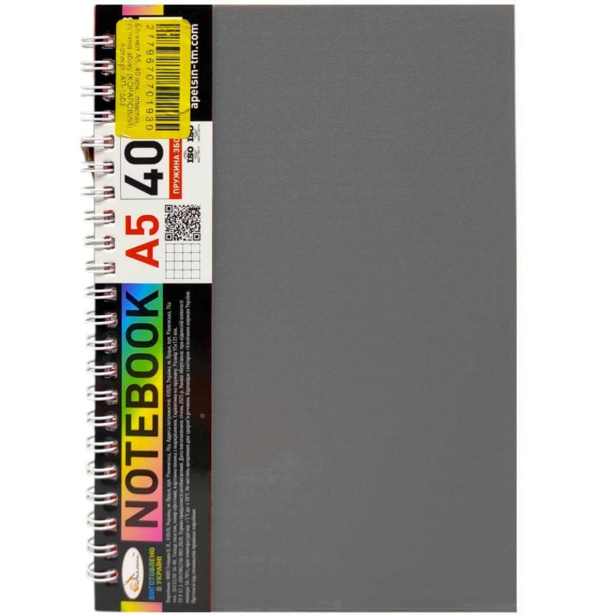 Опис Блокнот А5, 40 арк., пластик, пружина збоку (СІРИЙ)