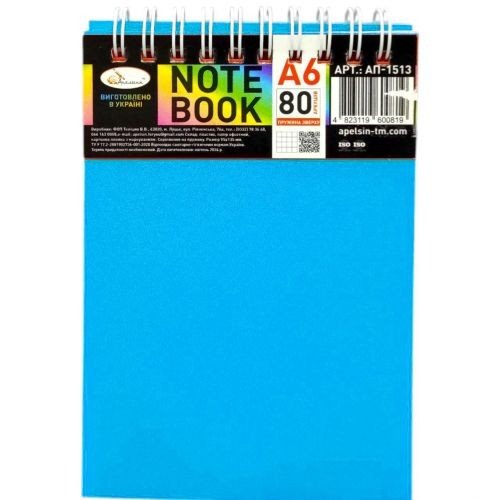 Опис Блокнот А6, 80 арк., пластик, пружина зверху (БЛАКИТНИЙ)