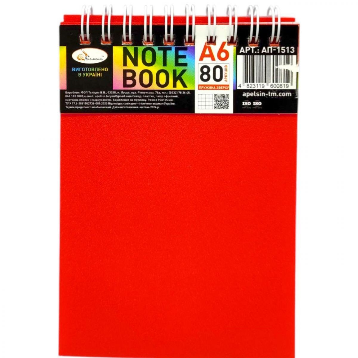 Опис Блокнот А6, 80 арк., пластик, пружина зверху (ЧЕРВОНИЙ)