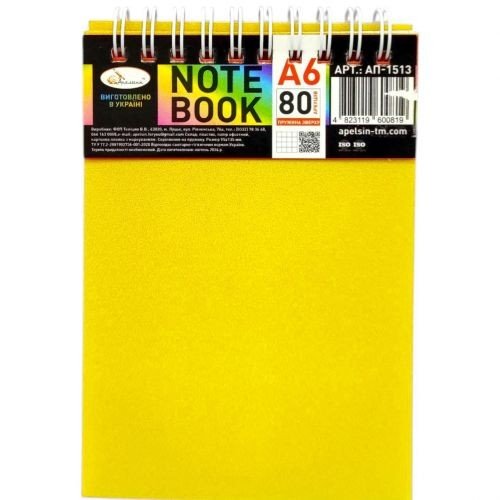 Опис Блокнот А6, 80 арк., пластик, пружина зверху (ЖОВТИЙ)