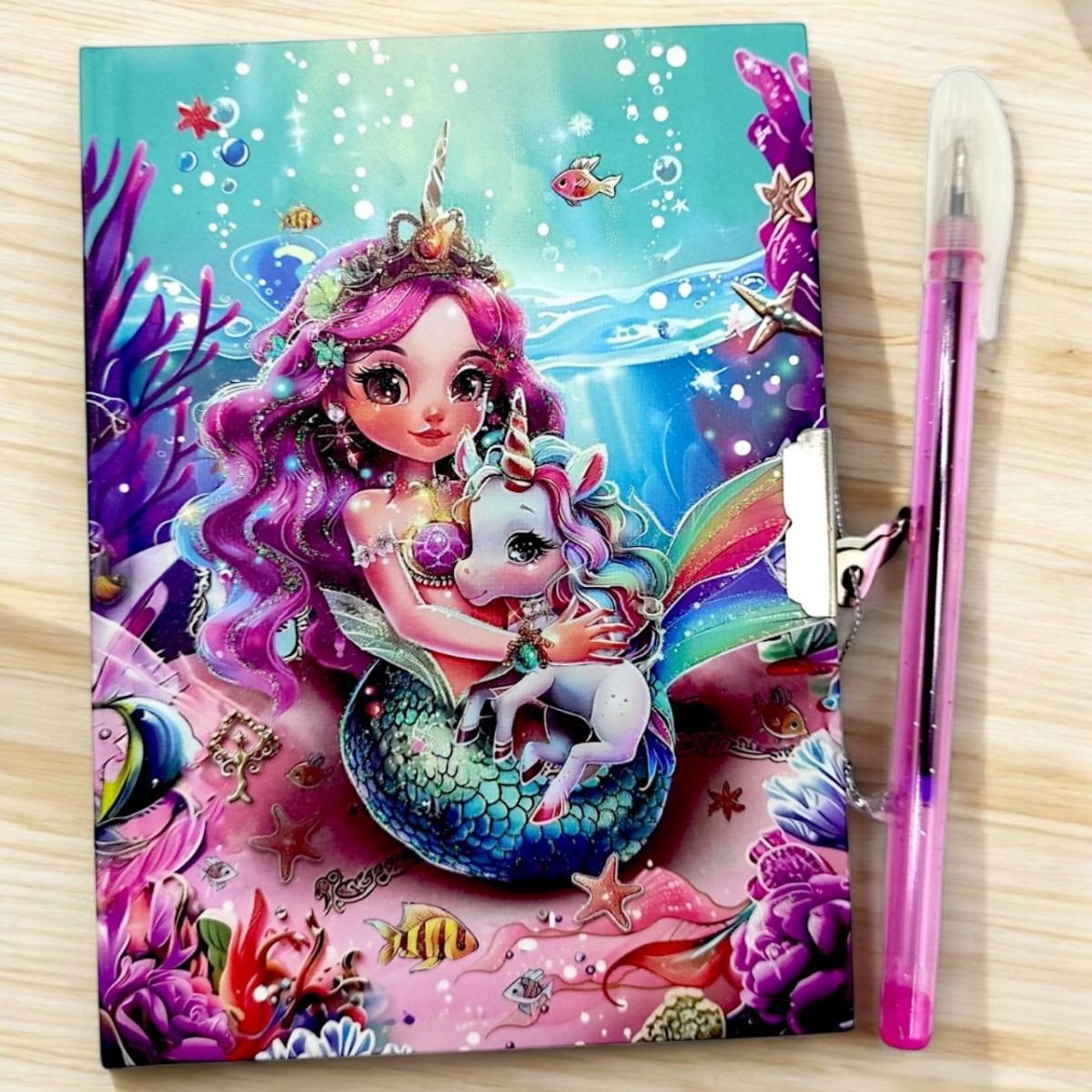 Блокнот дитячий на замочку, з ручкою 15x11 см (56 арк) "Русалонька"