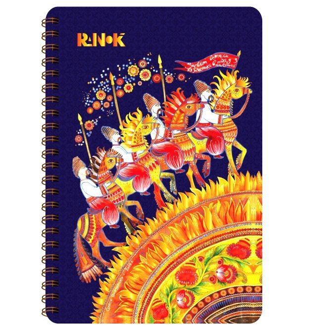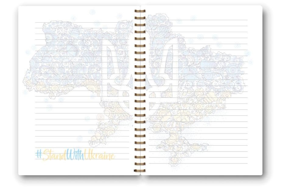 Подарунковий блокнот серії "З Україною в серці". 160 аркушів у лінію, папір високої якості. Авторська ілюстрація Олесі Вакуленко на обкладинці прикрашена золотим тисненням. Обкладинка виконана із щільного картону. Блокнот на металевій пружині збоку. Розмір блокнота – 15 х 21.5 см.