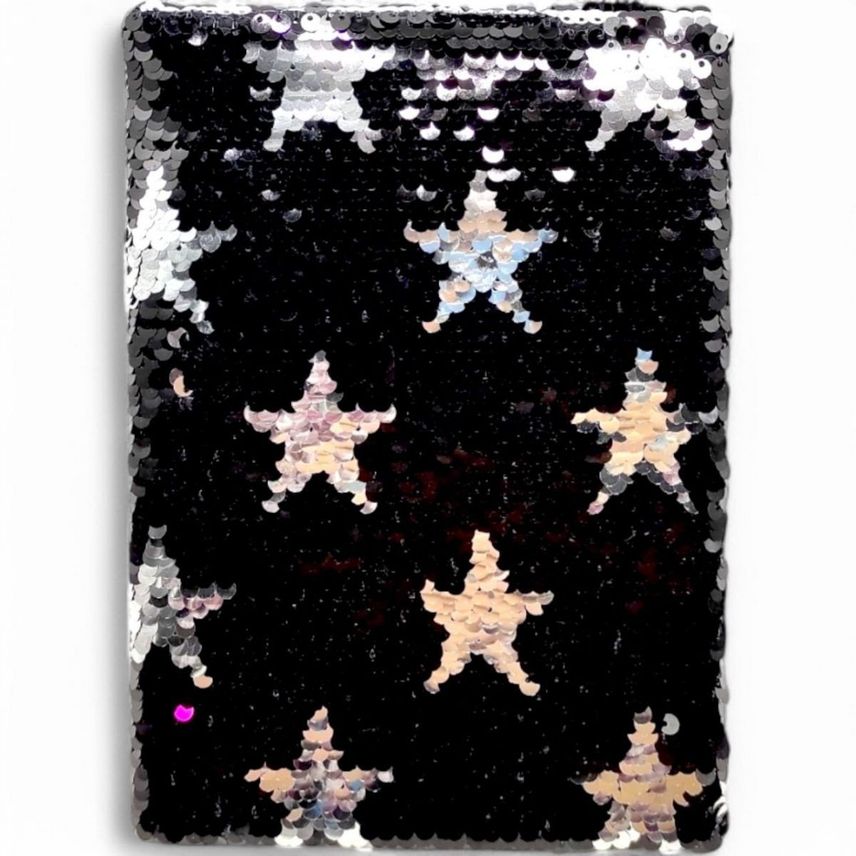 Опис Блокнот у твердій обкладинці з паєтками (80 арк; формат А5) клітинка, з зірочками