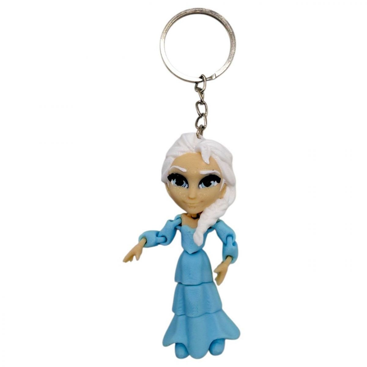 Брелок виконаний у вигляді персонажа в блакитній сукні з акуратною деталізацією обличчя та елементів одягу. Завдяки технології 3D друку фігурка має виразний об’єм та чіткі контури. Аксесуар виглядає охайно та привабливо, зручний у щоденному використанні.