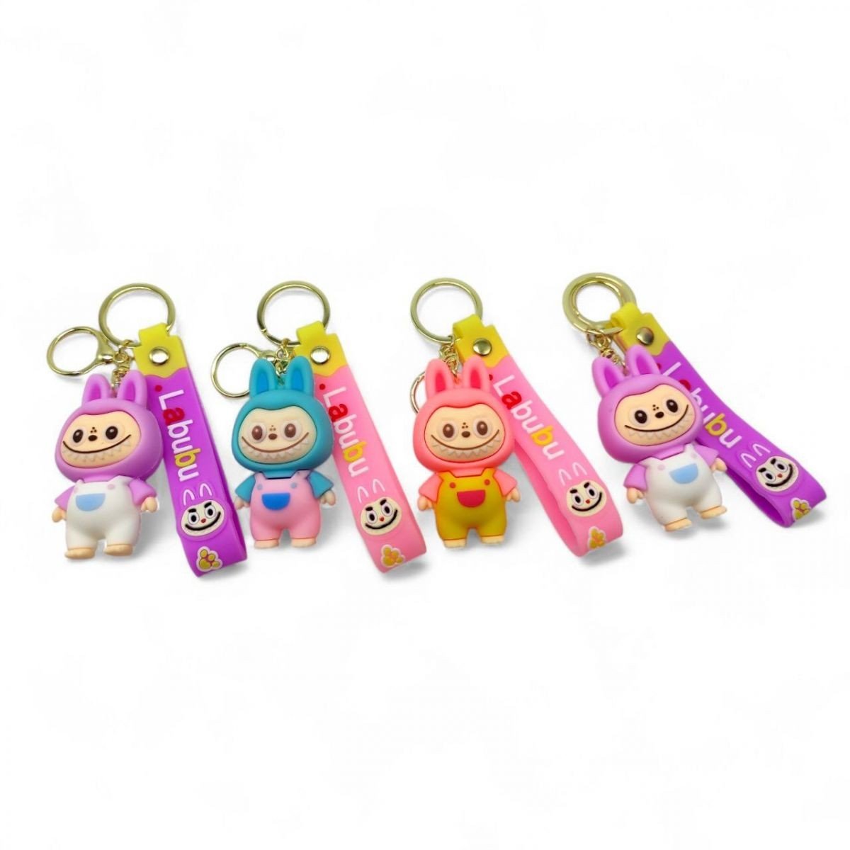Жахливо милий брелок у вигляді Лабубу. Гумова іграшка з цікавим елементом — стрічкою з написом та зображенням Лабубу. Ідеально підійде в якості прикраси для сумки або одягу, також можна прикріпити до звʼязки ключів. Має 5 варіантів. Розмір фігурки - 7 см, повністю брелок - 21 см.