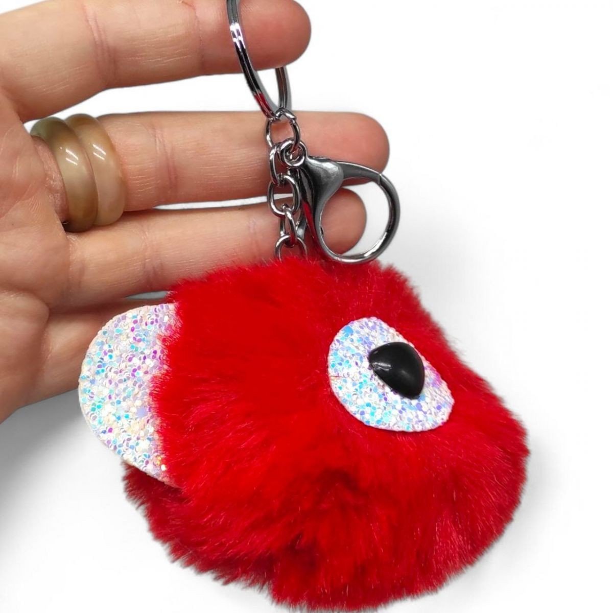 Опис Брелок Ведмедик вушка з блисткіками (МАЛИНОВИЙ)