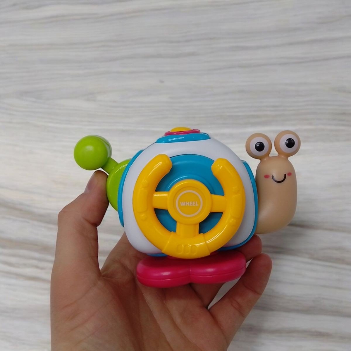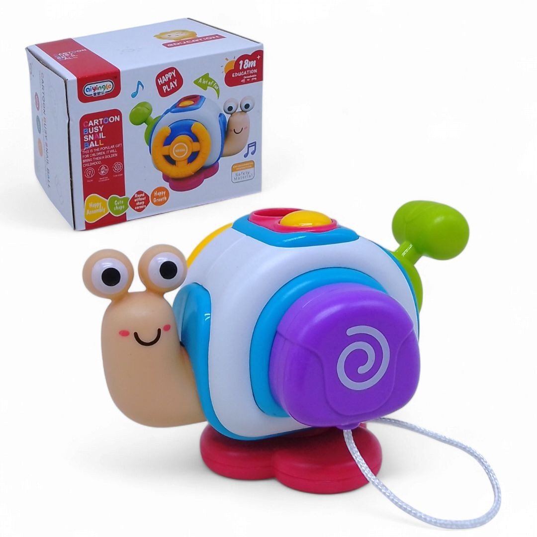 Цей яскравий і функціональний равлик обʼєднує безліч цікавих елементів, які допомагають розвивати дрібну моторику, тактильні відчуття та фантазію: