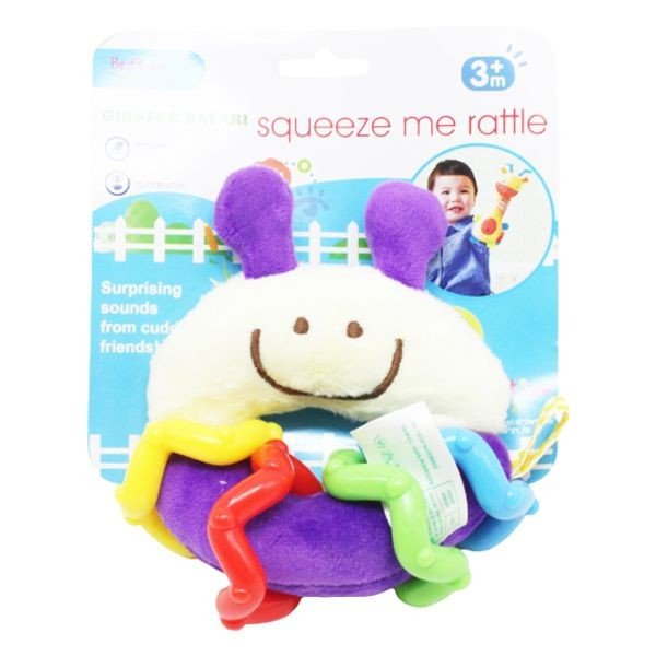 Брязкальце-кільце у вигляді милої тваринки. Вушка шелестять, є різнокольорові пластикові кільця для розвитку дрібної моторики рук. Іграшка м'яка та приємна на дотик, виконана з якісних та безпечних матеріалів. Розмір: 13х11 см.