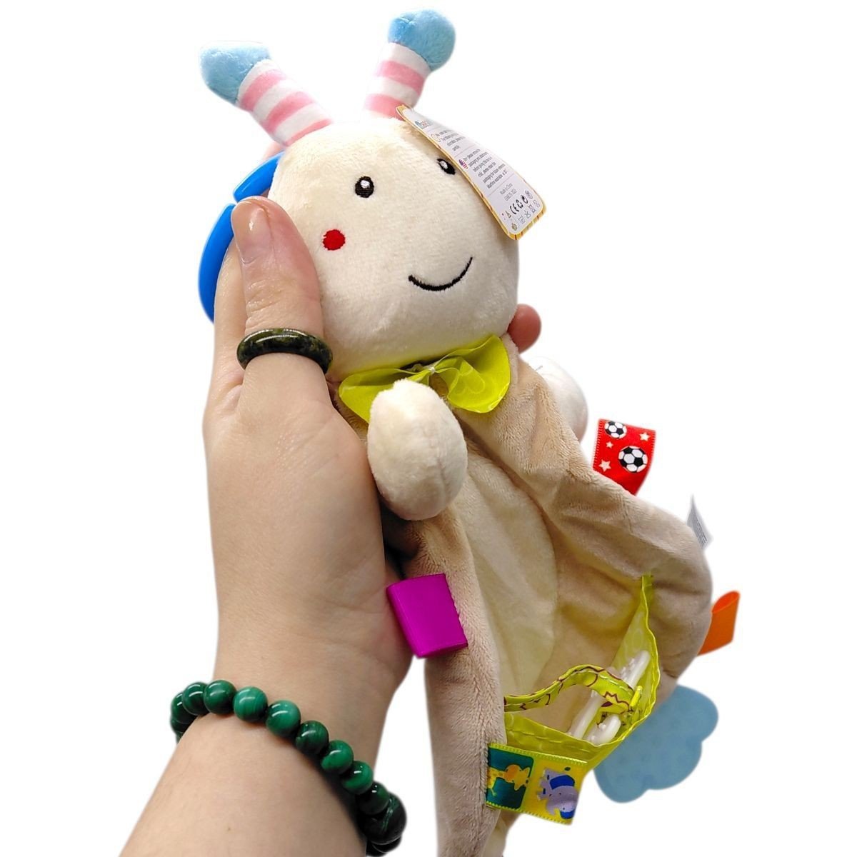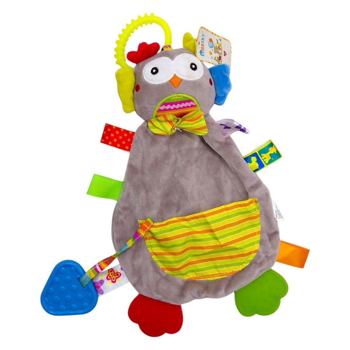 Брязкальце-комфортер створене для заспокоєння та забезпечення комфорту малюка з перших місяців життя. Іграшка має приємну на дотик текстильну частину у вигляді милої тваринки, яку зручно тримати маленькими ручками, обіймати та притискати під час відпочинку або сну. Гумовий прорізувач допомагає полегшити дискомфорт під час прорізування зубів, а брязкальце всередині м’яко привертає увагу дитини. На виробі є шелесткі частини та кільце для підвішування. Виготовлено з якісних і безпечних матеріалів.
