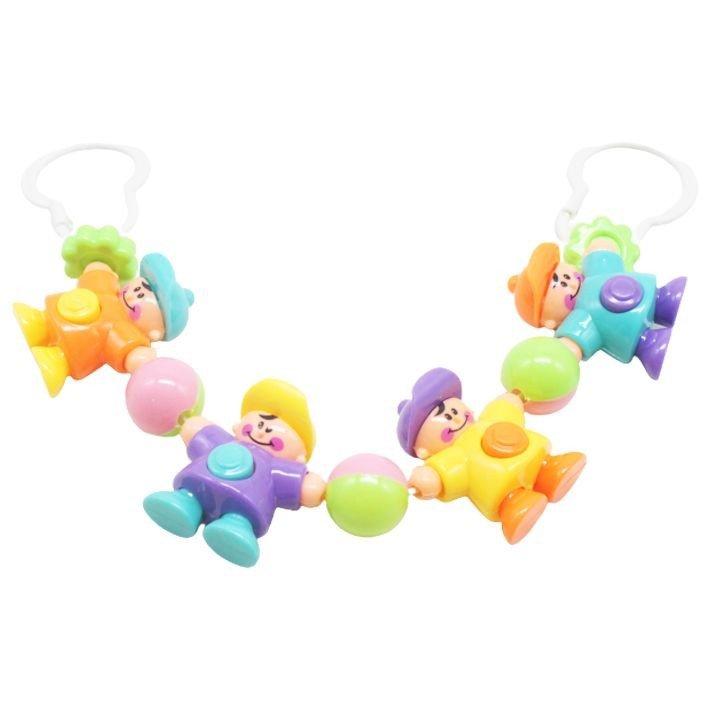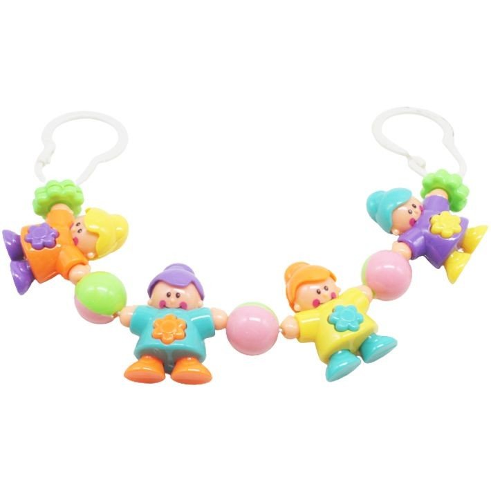 Брязкальце на візок "Хлопчики в шапочці". Чотири кумедні чоловічки на резинці. Є зручні кріплення, розтягується. Довжина: 35 см.