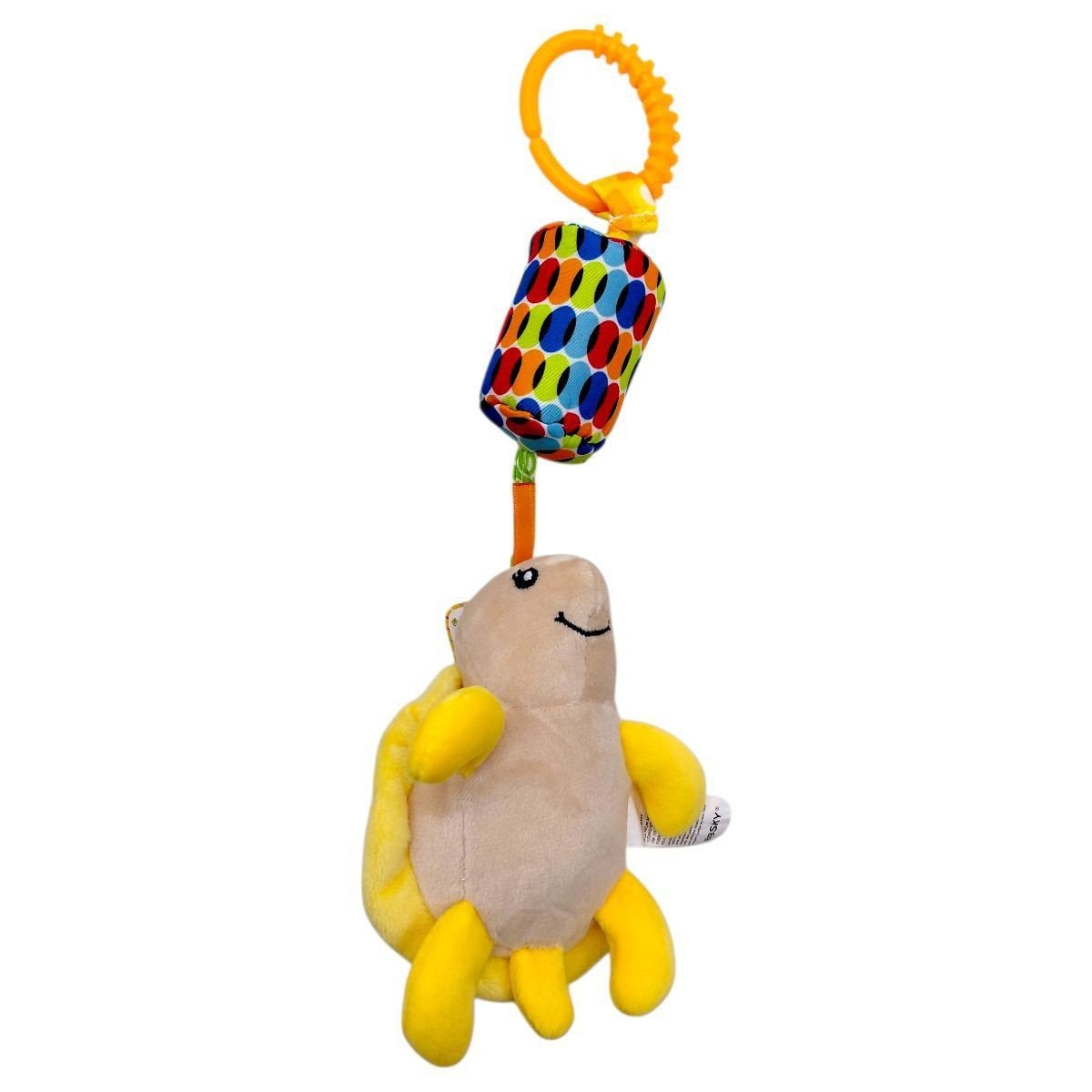 Це м’яке брязкальце створене спеціально для маленьких ручок. Іграшка легко тримається завдяки зручній формі, що дозволяє малюкові самостійно хапати, стискати та досліджувати її під час гри. До іграшки прикріплений дзвіночок та пластикова кліпса за яку брязкальце добре фіксується на ліжечку чи колясці. Довжина брязкальця (з кріпленням) - 33 см. Виконано з якісних та безпечних матеріалів.
