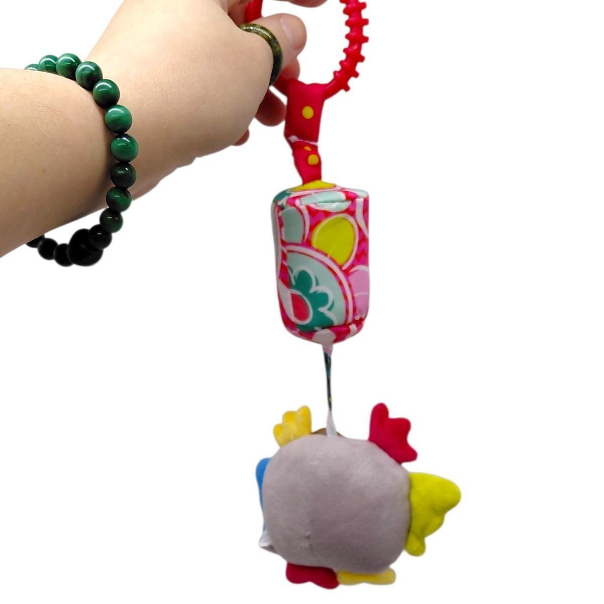 Це м’яке брязкальце створене спеціально для маленьких ручок. Іграшка легко тримається завдяки зручній формі, що дозволяє малюкові самостійно хапати, стискати та досліджувати її під час гри. До іграшки прикріплений дзвіночок та пластикова кліпса за яку брязкальце добре фіксується на ліжечку чи колясці. Довжина брязкальця (з кріпленням) - 33 см. Виконано з якісних та безпечних матеріалів.