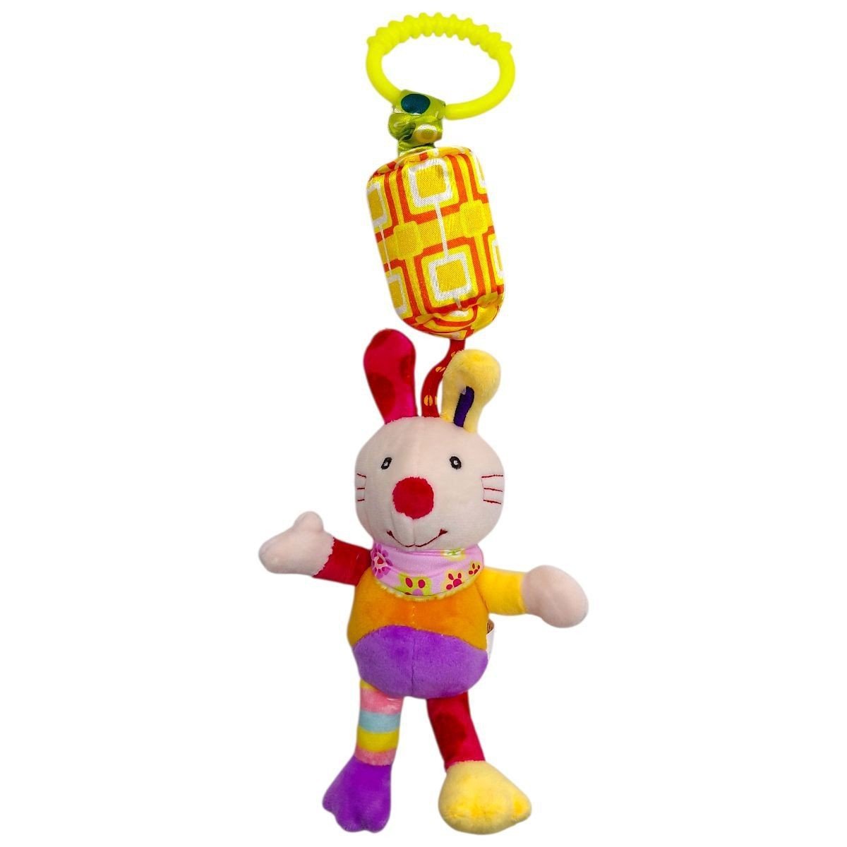 Це м’яке брязкальце створене спеціально для маленьких ручок. Іграшка легко тримається завдяки зручній формі, що дозволяє малюкові самостійно хапати, стискати та досліджувати її під час гри. До іграшки прикріплений дзвіночок та пластикова кліпса за яку брязкальце добре фіксується на ліжечку чи колясці. Довжина брязкальця (з кріпленням) - 33 см. Виконано з якісних та безпечних матеріалів.